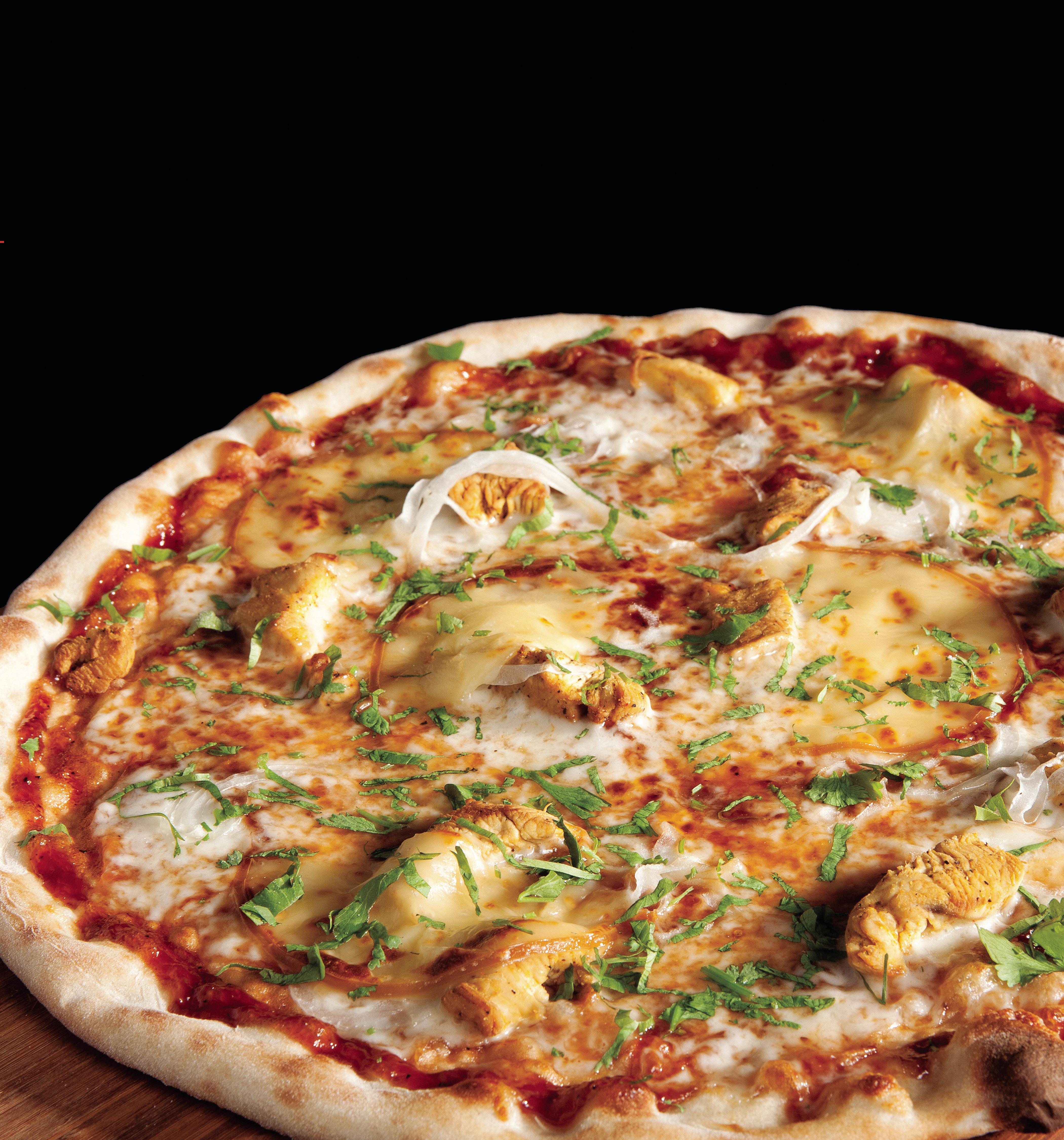 Barbeque Sauce, Roasted Chicken, Fresh Mozzarella, Onion, Smoked Gouda Cheese, Topped with Fresh Cilantro. Pizza may be considered a quintessential weekend indulgence, but it can also be a healthy meal that's high in protein, vitamins, and minerals. The key to making a healthy pizza is to add plenty of fresh, whole ingredients that are nutritious and low in sodium, calories, and fat. When choosing a topping, opt for lean meats that provide essential nutrients like protein, iron and zinc. Shredded chicken is an excellent option as it is lower in fat than beef and contains niacin, potassium and iron. Likewise, it is an excellent choice for those looking to get more protein on their diet without adding too much saturated fat.