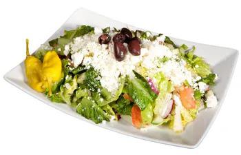 Lettuce, Tomatoes, Cucumbers, Red Onions, Topped With Feta Cheese, Kalamata Olives, Pepperocini, Tossed In Our Homemade Greek Dressing Reg Large Family Party