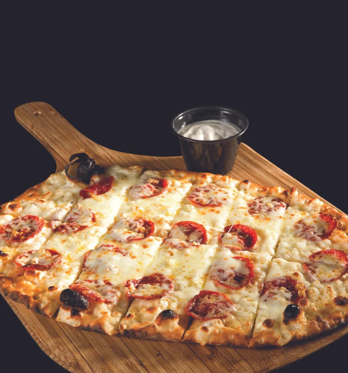 Serviced with homemade tomato sauce Garlic Cheesy Bread Serviced with homemade tomato sauce