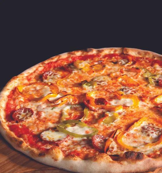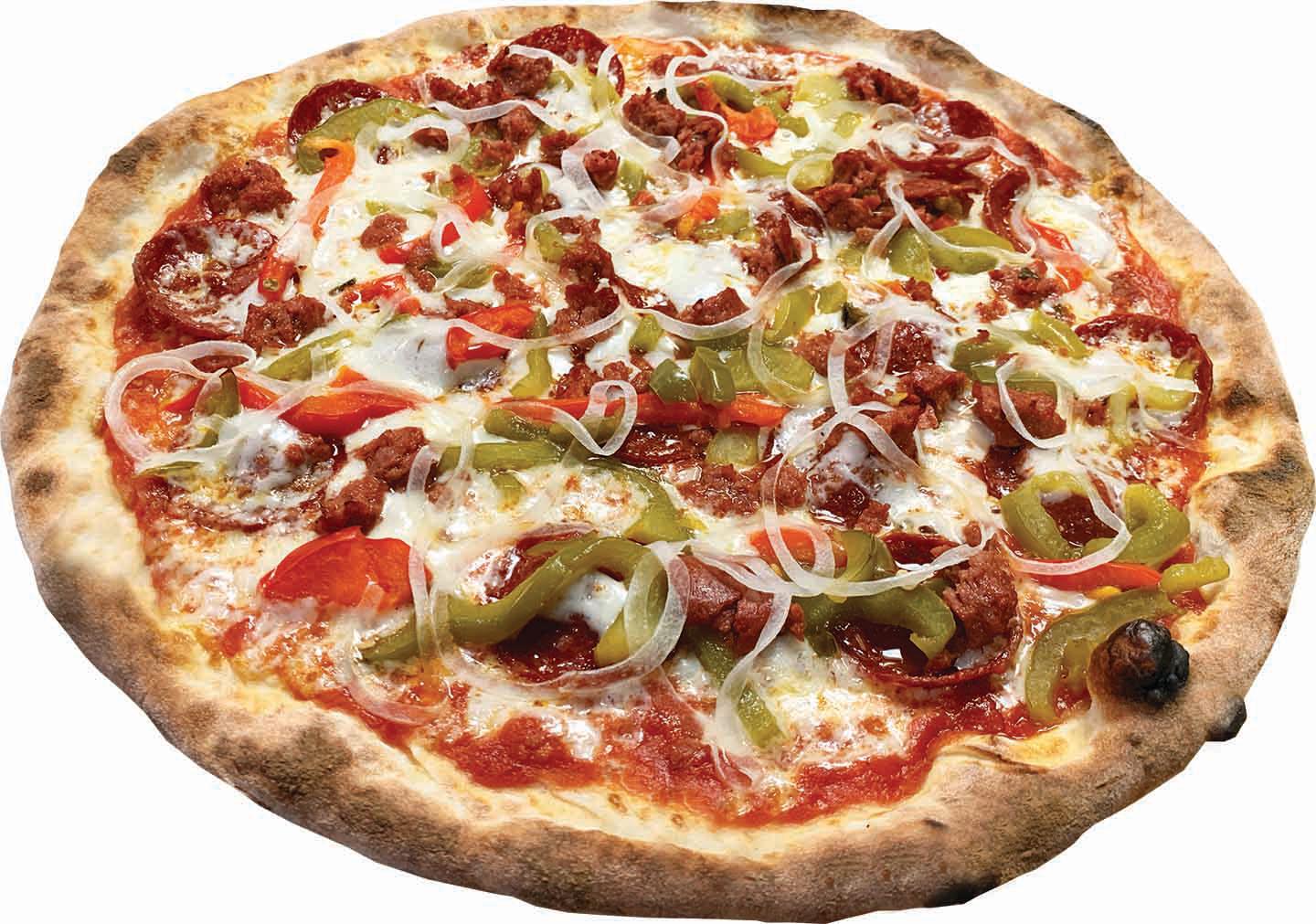 Beef Sausage, Roasted Peppers, Beef Pepperoni, Onions Fresh Pizza Sauce, Fresh Mozzarella Cheese: No discussion about pizza would be complete without mentioning cheese, the ingredient responsible for the iconic stretchy, gooey texture. Mozzarella, Parmesan, and ricotta are popular cheese choices. Despite their indulgent reputation, when consumed in moderation, cheese can offer several health benefits. Cheese is an great source of protein and calcium. All these parts of cheese help for strong bones, teeth, and muscle function. Additionally, it contains vitamins A and B12, contributing to healthy vision and nerve function.