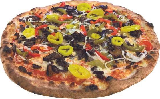 Fresh Pizza Sauce, Fresh Mozzarella, Grilled Eggplant, Zucchini, Roasted Peppers, Onion, Tomato & Oregano. Vegetables are often overlooked as a topping for pizza, but adding these ingredients to your favorite pizza can really make it a healthy meal. Vegetables add fiber and vitamins to your diet, and they're also an easy way to cut down on calories. Vegetables are low in fat and protein, so they're a good choice if you're trying to lose weight. When choosing which vegetables to use on your pizza remember that its always good with a nice tasting pizza crust. We use a baking stone oven, with a pizza pan or cast-iron skillet to bake your pizza on. A hot stone oven will create the best crust. The crust should be golden around the edges and browned throughout the bottom. When you're ready to eat, let your pizza cool for a few minutes before serving. That'll help you avoid a soggy, bloated pizza that's hard to enjoy.