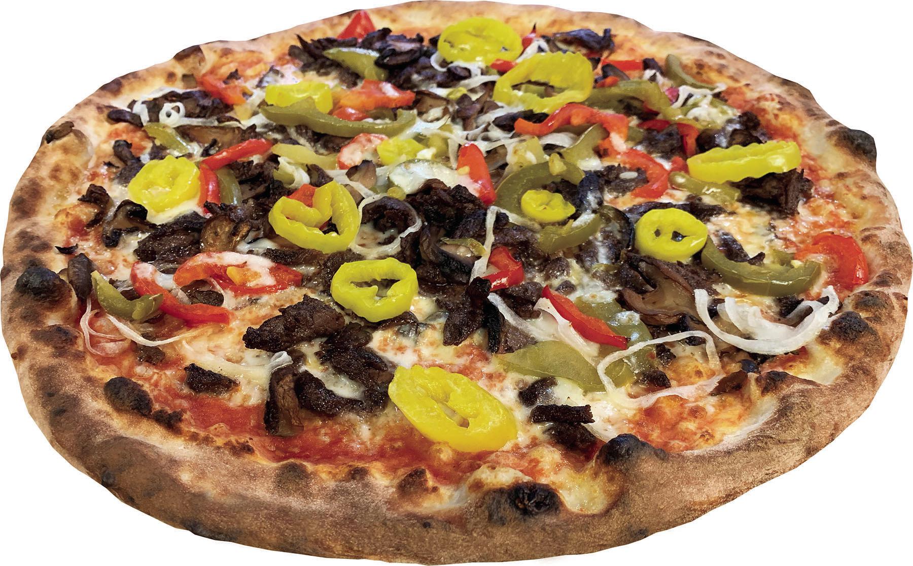 Steak Shawarma, Mushrooms, Roasted Peppers, Banana Peppers, Onion, Fresh Pizza Sauce, Fresh Mozzarella Vegetables: The rainbow of vegetables that adorn pizzas adds both visual appeal and a range of health benefits. Fresh vegetables offer a nice variety of flavors. Vegetables are also rich in vitamins, minerals, and dietary fiber. Bell peppers have a lot of vitamin C and antioxidants. This can help with collagen production and boosting the immune system. Mushrooms have a meaty texture. Mushrooms can also help with immune function and reducing inflammation.