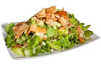 Mixture of Romaine Lettuce, Cucumbers, Sumac, Pita Chips, Cabbage, Lemon, Olive Oil, Garlic & Fresh Herbs Reg Large Family Party