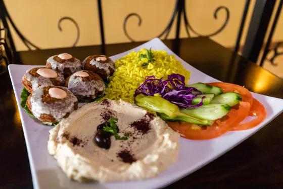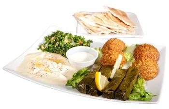 Hummus, falafel, grape leaves, tabouli and tahini sauce Served with pita bread Platter