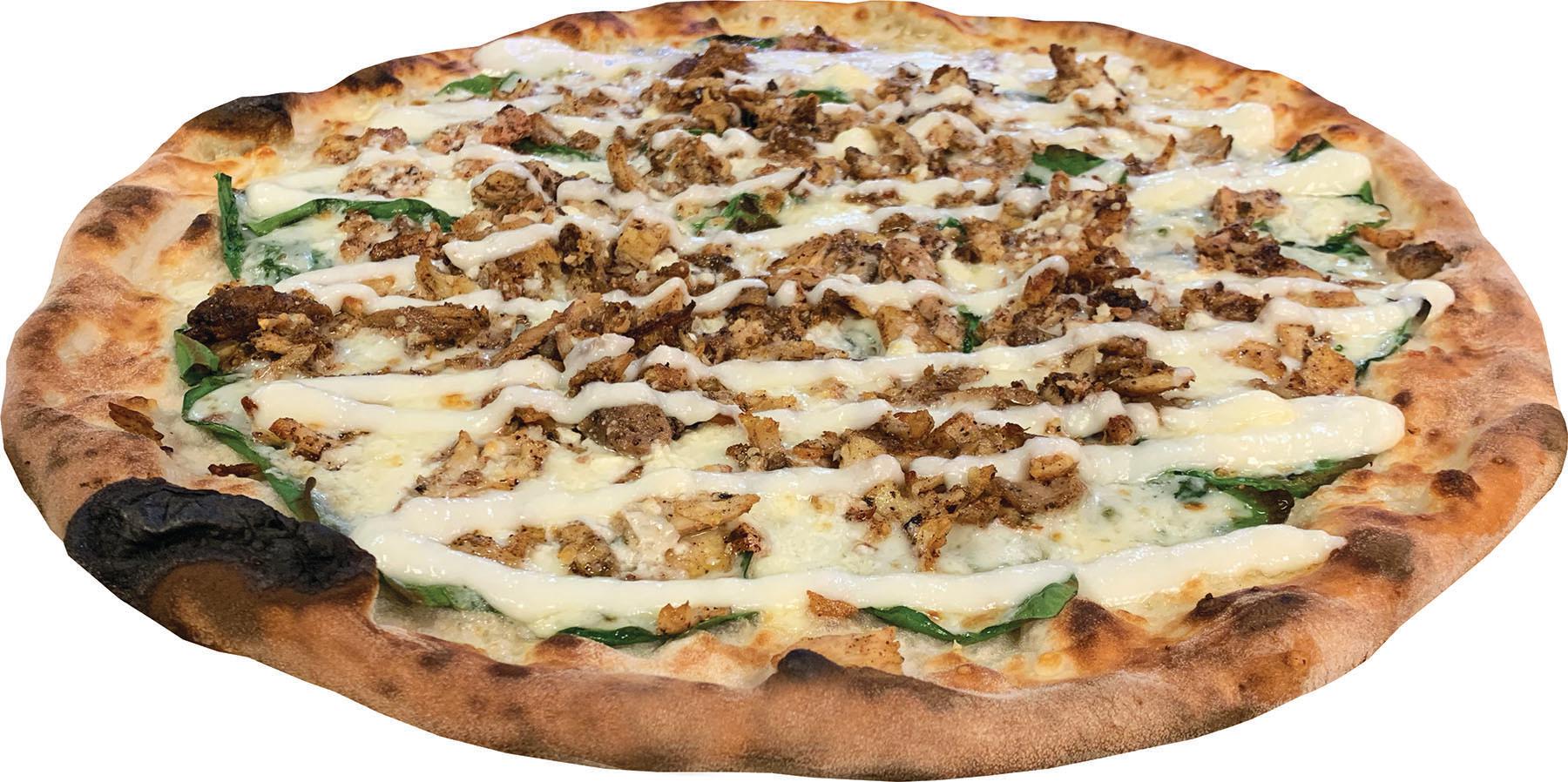 Sautéed Mushrooms, Turkey Ham, Kalamata Olives, Herb Marinated Artichokes, Fresh Pizza Sauce & Fresh Mozzarella