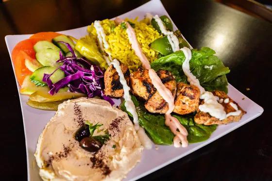 Substitute Rice For Quinoa Classic Gyro FAV Rice, Romaine Lettuce, Feta, Tomato, Parsley, Drizzled with Tzatziki Sauce Classic Chicken Shawarma Rice, Romain Lettuce, Tomato, Parsley, Feta, Drizzled With Garlic Sauce Classic Falafel Rice, Cabbage, Lettuce, Tomato, Pickles, Parsley, Drizzled with Tahini Sauce Classic Beef Shawarma Rice, Romaine Lettuce, Red Onions, Pickles, Hummus, Parsley, Drizzled With Tahini Sauce Classic Chicken Tawook Rice, Romaine Lettuce, Feta, Tomato, Parsley, Drizzled with Garlic Sauce Create Your Own Bowl Choose one of the Protein Gyro, Chicken Shawarma, Chicken Tawook, Falafel - Double It Choose Toppings Yellow Rice, Lettuce, Tomato, Red Onions, Pickles, Cabbage, Corn, Shredded Carrot, Cucumber Choose Sauces Garlic Sauce, Tzatziki Sauce, Tahini Sauce, BBQ Sauce, Ranch, Hot Sauce, Spicy Tzatziki Extras Feta Cheese, Mozzarella Cheese, Gorgonzola Cheese, Pita Bread, Hummus *Gluten Free When Ordered Without Bread